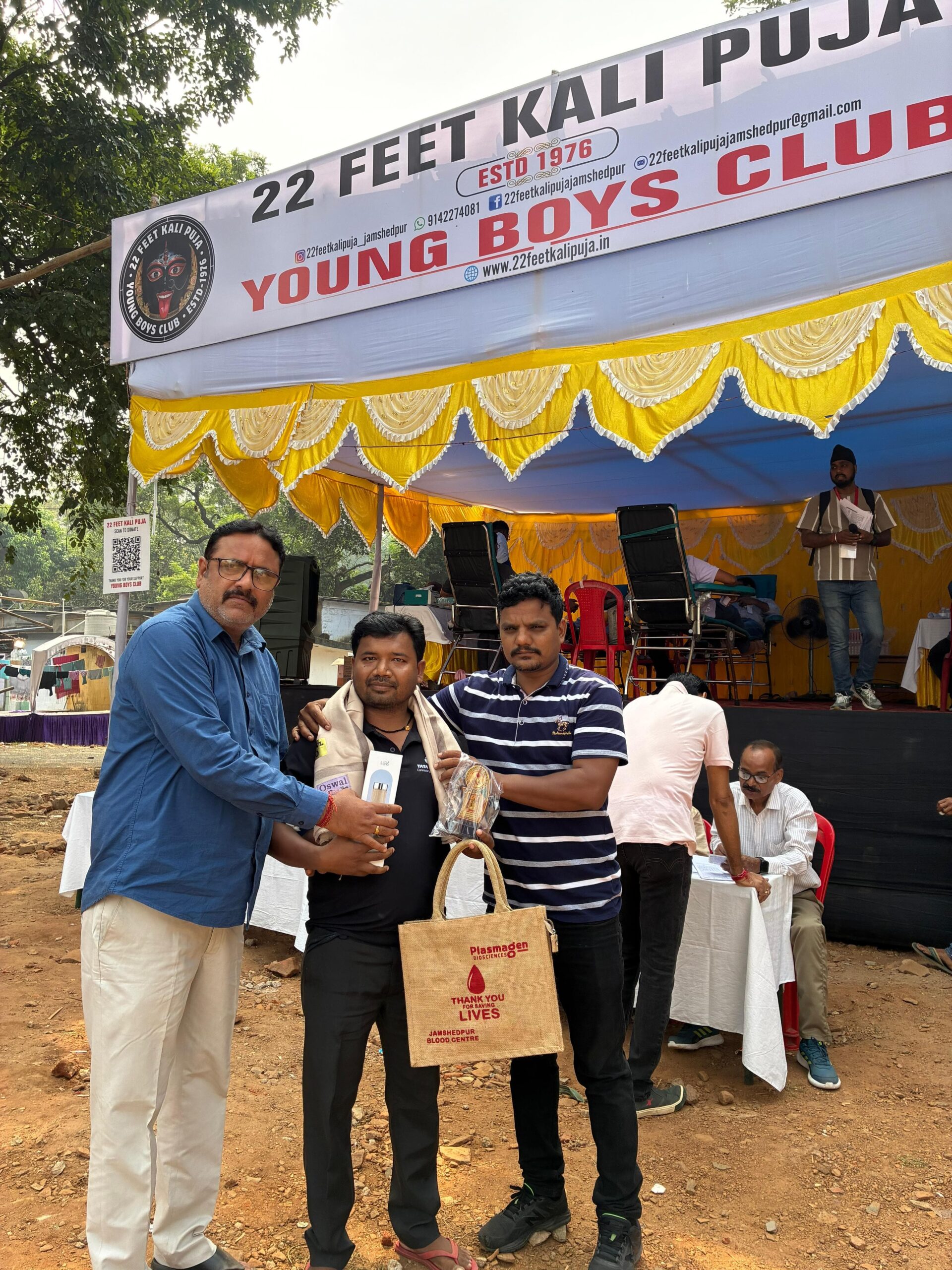 टेल्को क्रॉस रोड संख्या-09 स्थित यंग बॉयज़ क्लब द्वारा आयोजित 22 फीट माँ काली पूजा के स्वर्ण जयंती वर्ष में शुक्रवार को आयोजित रक्तदान शिविर में देर शाम तक कुल 101 यूनिट रक्त संग्रहित किया गया। समिति के अध्यक्ष पप्पू मिश्रा ने बताया कि सामाजिक सरोकार के इस पहल के साथ पूजा समिति ने माँ काली के चरणों में मानवता का संदेश दिया है।