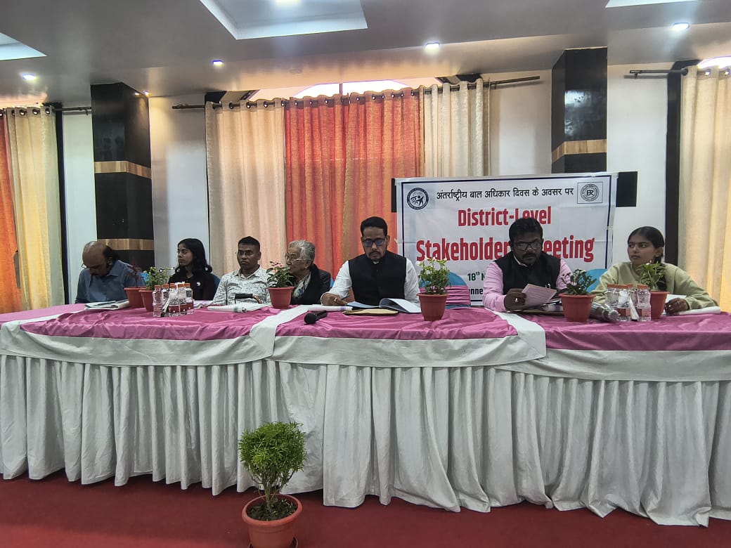 अंतर्राष्ट्रीय बाल अधिकार दिवस के उपलक्ष्य में आदर्श सेवा संस्थान एवं रूरल डेवलपमेंट एसोसिएशन के संयुक्त तत्वावधान में जिला स्तरीय स्टेकहोल्डर्स’ मीटिंग का आयोजन होटल कैनलाइट, साकची में किया गया। कार्यक्रम में मुख्य रूप से पूर्वी सिंहभूम जिला विधिक सेवा प्राधिकरण के सचिव धर्मेंद्र कुमार, जिला समाज कल्याण पदाधिकारी संध्या रानी ठाकुर, जिला बाल संरक्षण पदाधिकारी प्रेम प्रकाश, जुवेनाइल जस्टिस बोर्ड के सदस्य सुधीर कुमार, आदर्श सेवा संस्थान की सचिव प्रभा जयसवाल, रूरल डेवलपमेंट एसोसिएशन से सुजॉय भट्टाचार्या, बाल कल्याण पुलिस पदाधिकारी (सोनारी थाना) परेश राजवार, अन्य पुलिस पदाधिकारी, विभिन्न सिविल सोसायटी संगठनों के सदस्य, पीएलवी सदस्य, घाटशिला ग्रामीण क्षेत्र से युवा साथी तथा जमशेदपुर अर्बन के युवा साथी उपस्थित रहे।
