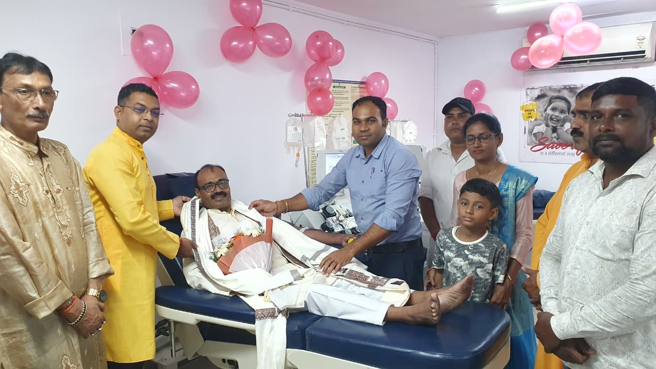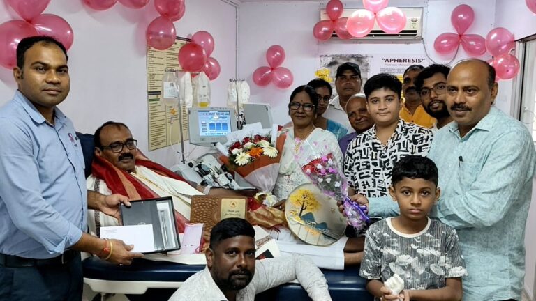 प्रतीक संघर्ष फाउंडेशन यानी टीम पीएसएफ के सदस्य रवि शंकर के रूप में शहर को एक और शतकवीर रक्तदाता दिया. आज जमशेदपुर ब्लड सेंटर के आह्वान पर, गम्भीर बीमारी से जंग लड़ रहे एक जरुरतमंद के लिए अपना एसडीपी रक्तदान के जरिए, शतकीय पारी को पूरा कर लिया. रवि शंकर ने 86वां स्वैच्छिक रक्तदान और 14 बार एसडीपी रक्तदान के माध्यम से अपनी शतकीय पारी को पूरा किया. रक्तदान कक्ष को उनके स्वागत में रंग बिरंगे गुब्बारे से सजाया गया था. रक्तदान करने के पश्चात रवि शंकर को पुष्प गुच्छ, शाॅल ओढ़ाकर, प्रशस्ति पत्र एवं कई प्रतीक चिन्ह देकर सम्मानित किया गया.